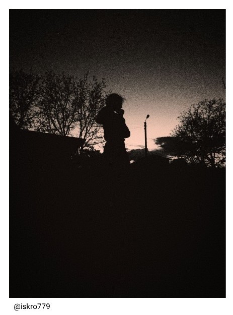 The photographer who took this picture posted by @iskro779 has a perfect sense of photography. The silhouette of a figure caught between the trees and the pale light from the sunset is captured gracefully in the picture. It strikes me as more dreamy and lonely because I can’t tell what is hidden in the black.