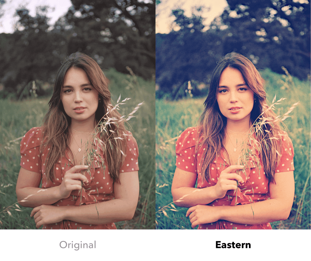 The Eastern filter emulates morning sunlight. It enhances blue and gold tones. The filter brings a nostalgic feel to photos. Allow the Eastern filter to show off your prime.