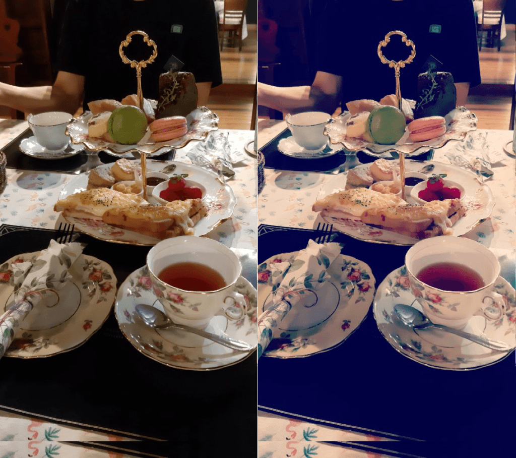 I used Phonetic filters also at the tea room that I visited after watching the exhibition. I shot the afternoon tea combo that I ordered, but the photo did not turn out as good as seen with the naked eyes, because the café was located in the basement that did not let in natural light. But using the Flutter filter from the Phonetic pack, I could record a tea time with an antique and classic feel. I cannot help but love the Phonetic filters as they allow me to correct various types of photos with diverse combinations of delicate color impressions and gentle lights!