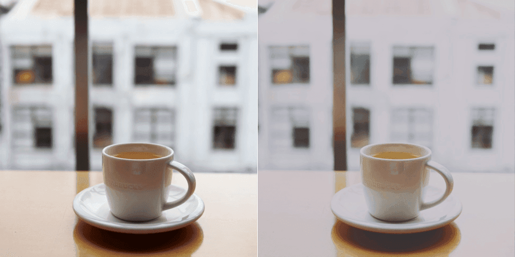 Left – regular camera photo, right – Verdial filter from the Superb pack applied.